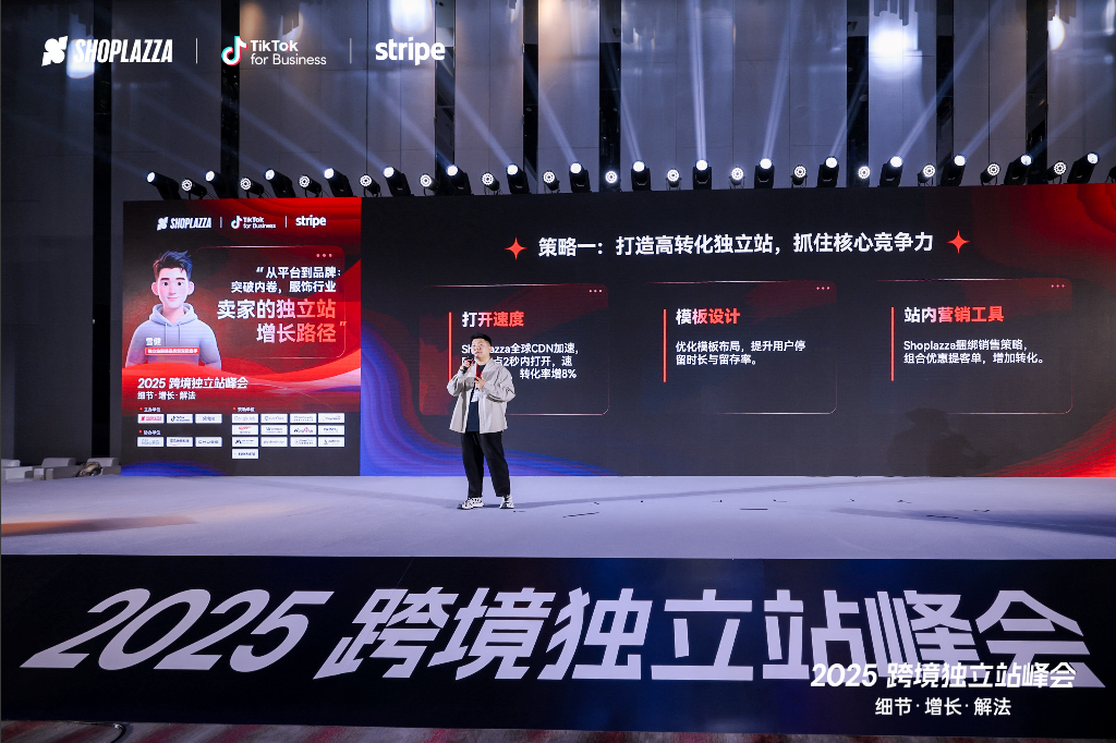 近日,“2025 跨境独立站峰会”在深圳圆满举行。大会由店匠科技(Shoplazza)、TikTok for Business、Stripe 联合主办,同时集结谷歌、菜鸟、安达集团 Chubb 等多家头部生态伙伴,吸引数百位跨境品牌与服务商代表共聚一堂,围绕“独立站全链路增长”展开深度探讨。